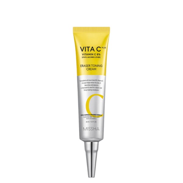 🌸 MISSHA Vita C Plus Eraser Toning Cream is a non-irritating cream with a high content of nourishing vitamins that helps to reduce the appearance of blemishes and dark spots on the skin.