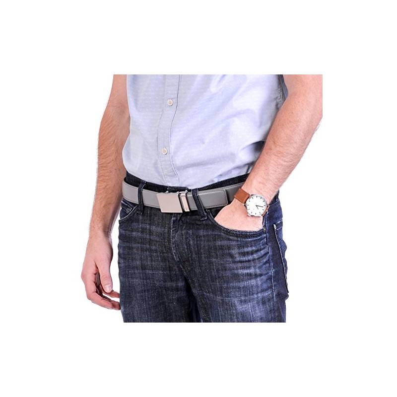 Mission Belt Men's Ratchet Belt - Steel - Steel Buckle/Cool Gray Leather Strap, Large (36-38)