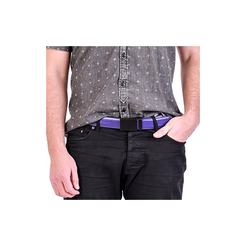Mission Belt Mens Ratchet Leather Belt - No Holes, 40mm, Unobtainium - Swat Black Buckle/Purple Leather Strap, Small (28-32)