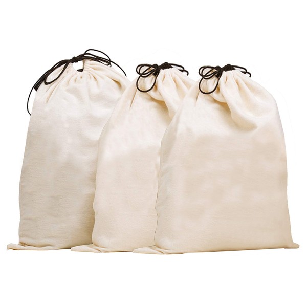 MISSLO Set of 3 Cotton Breathable Dust-proof Drawstring Storage Pouch Bag, (Pack 3 XL)