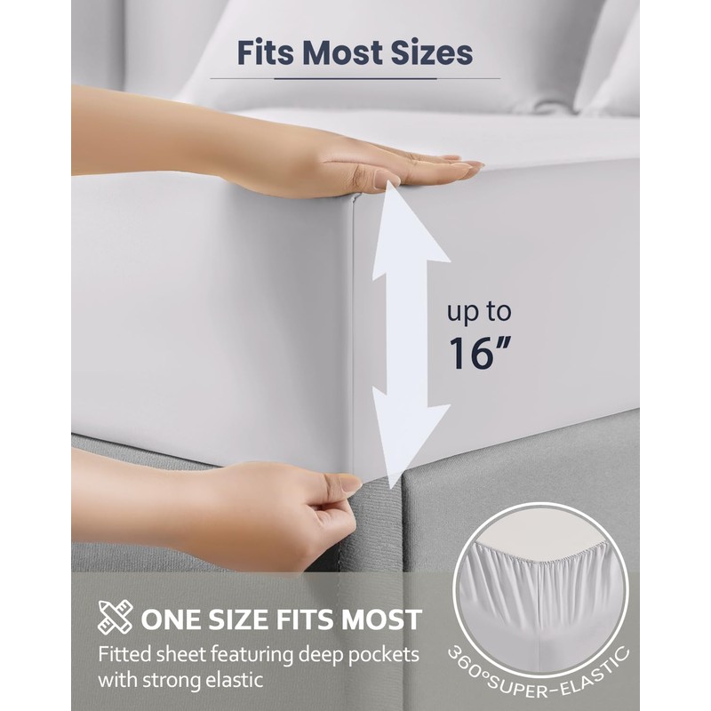 - Perfect Fit & Stability: Tailored for your full sheets mattress, the MISSQ 4PCS full size sheets guarantee a perfect fit. Featuring 1x fitted sheet (75”x 54”x 16”), 1x flat sheet (96”x 81”), and 2x pillowcases (20”x 30”), our fitted sheet full are equipped with high-quality elastic bands to accommodate mattresses up to 16 inches deep pocket full sheet set. Enjoy a stable and comfortable sleep environment without worries of slipping or loosening.