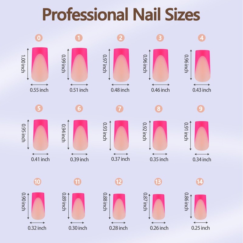 - 【15 DIFFERENT SIZE SELECTION】These square press on nails contains 15 different sizes of nail pieces, 300 pieces in total. You can find the nail size that suits you more quickly through the professional nail size database, ensuring fake nail tips a comfortable and secure wear.