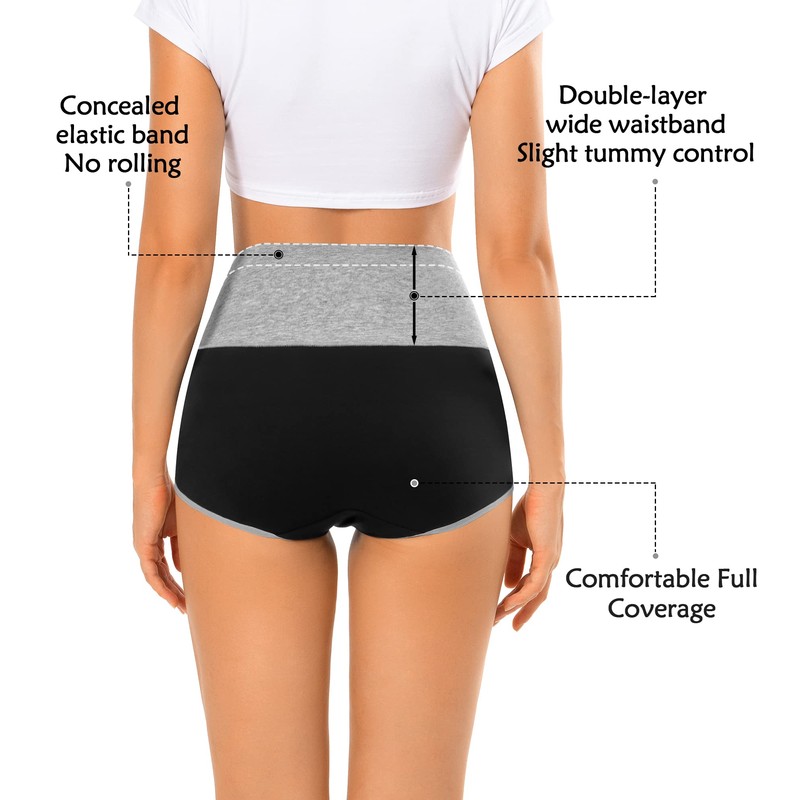 - DOUBLE-LAYER HIGH WAISTED WAISTBAND: Full coverage high-waisted panties for womens with double-layered soft fabric waistband to attach to the waist. No pinching, no binding, not too tight but not loose, no muffin top.