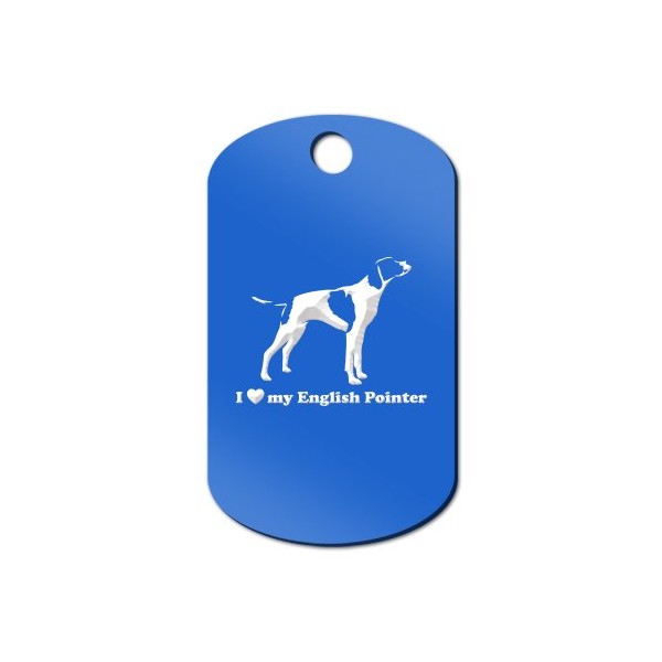 Mister Petlife I Love My English Pointer Engraved Keychain/GI Tag Blue
