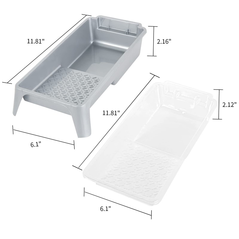 - HIGH QUALITY TRAY The depth of the paint tray can hold a lot of paint. The included shell liner is of high quality and can be thrown away or cleaned but is sturdy enough for next use.