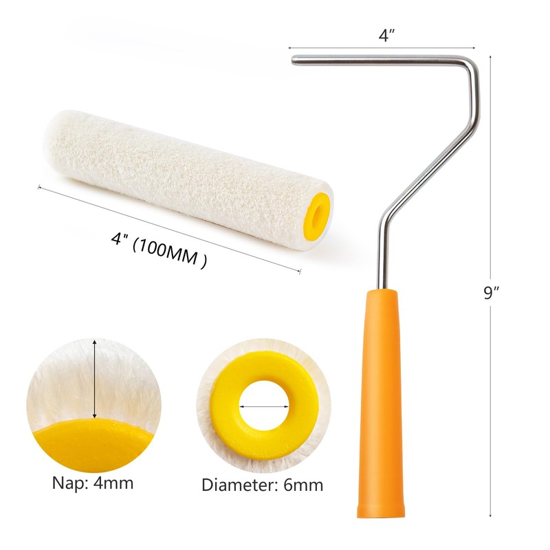 Mister Rui Mister Rui Farbroller, Farbroller aus einer Mischung aus Wolle und Polyester, mit L?nge 4"(100MM), Kurzflor 4MM, verwendet fr ?l- und Wasserfarben, Wolle Farbroller Abdeckung*20, Farbroller Bgel*1