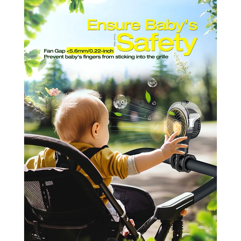 - 👶【Safe Design for Baby】Ausic portable misting fan has a fan cover gap of less than 5 mm, fully preventing baby’s little fingers from accidentally touching the fan blades. Our baby stroller fan with mist also made of high-quality ABS material, non-toxic, odorless and environmentally friendly, making it safer for children to use.