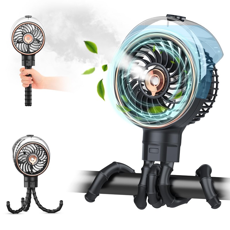 Misting Baby Stroller Fan, 100ml Portable Misting Fan for Stroller, Outdoor Clip On Fans for Baby Detachable Tripod, Handheld Fans, Desk Fans, Cooling Fanes for Treadmill, Car, Travel, Work (Black)