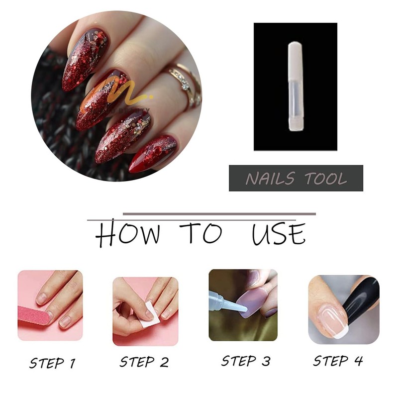 3.Select a right size of the nail, apply the glue to the back of the nail and put it on your fingernails.