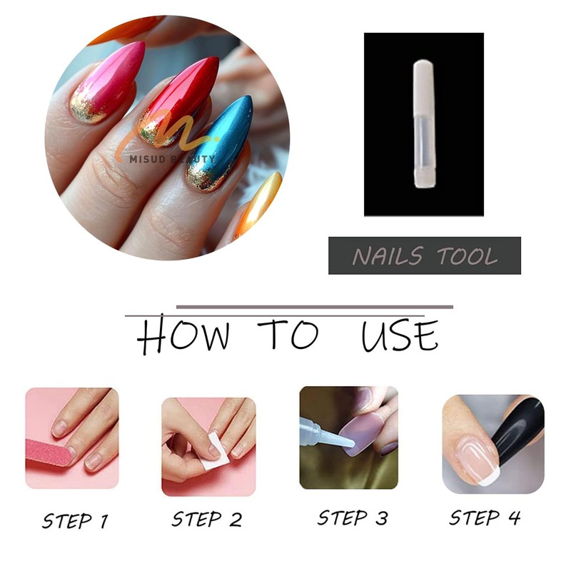 3.Select a right size of the nail, apply the glue to the back of the nail and put it on your fingernails.