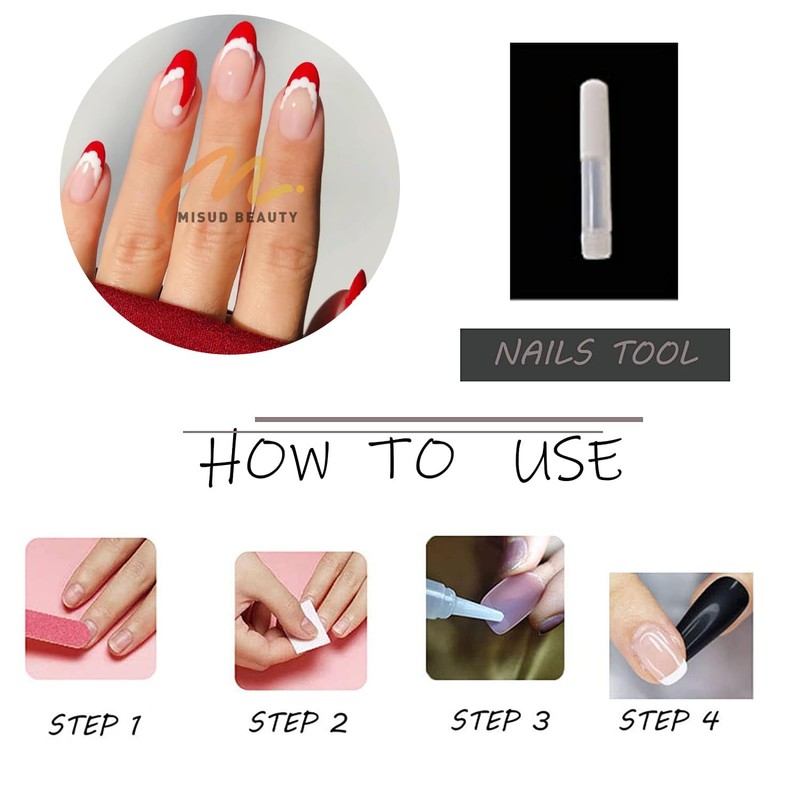 3.Select a right size of the nail, apply the glue to the back of the nail and put it on your fingernails.