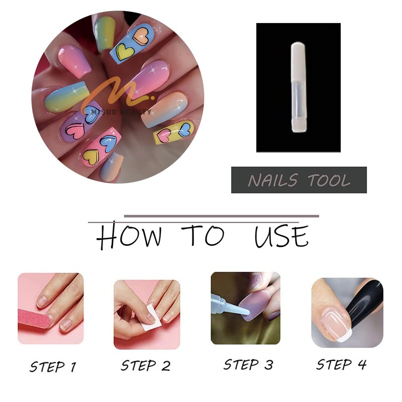 3.Select a right size of the nail, apply the glue to the back of the nail and put it on your fingernails.