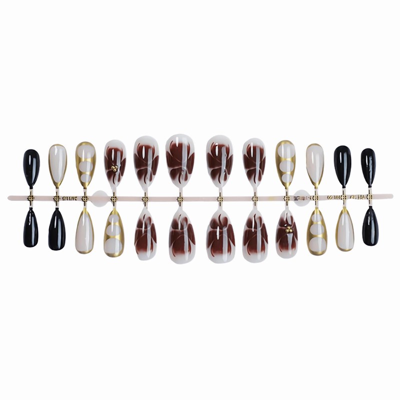 - 【Unique Design】 According to the most popular elements of the fall moment, these medium almond press on nails are designed with brown flower and gold chrome.