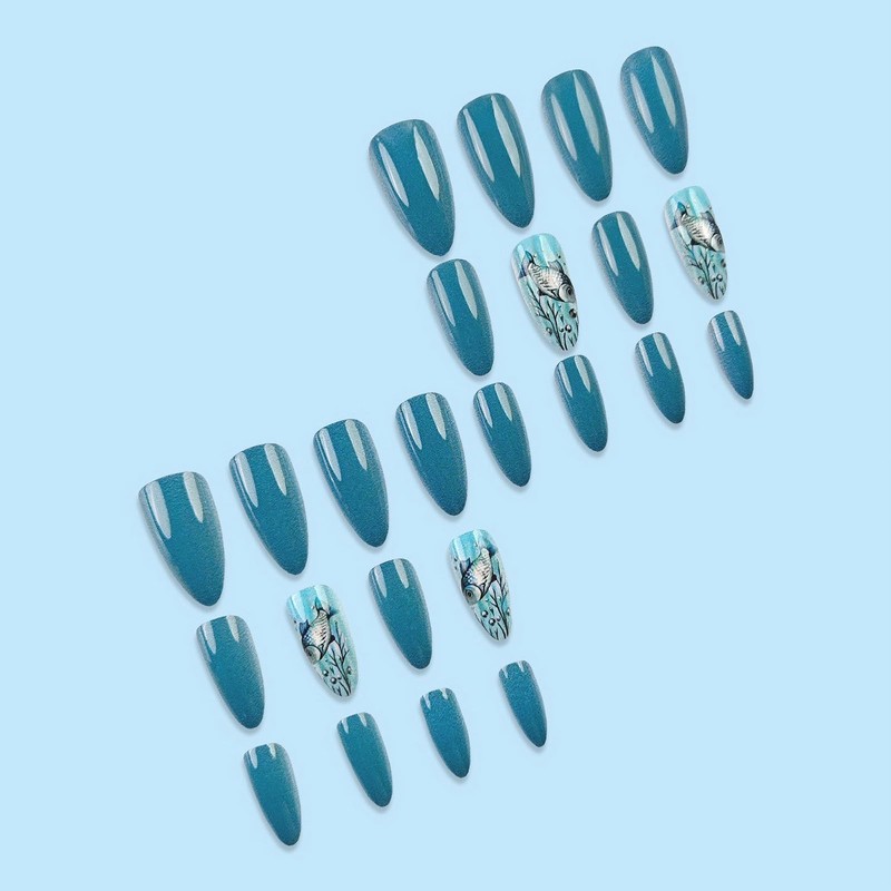 - 【Unique Design】 According to the most popular elements of the summer moment, these medium almond press on nails are designed with blue gel and fish.