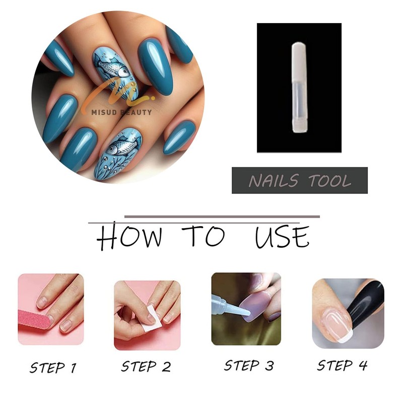 3.Select a right size of the nail, apply the glue to the back of the nail and put it on your fingernails.