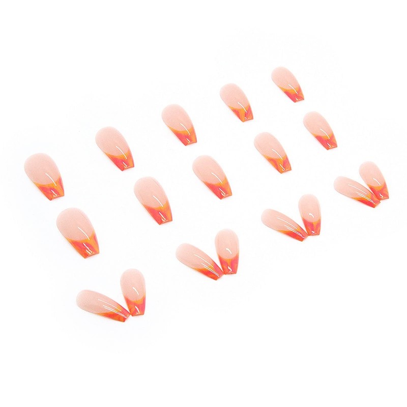 MISUD Press on Nails Long Coffin French Tip Fake Nails Ombre Acrylic Nails Ballerina Artificial Nails Glossy Glue on Nails Orange Swirl Designs False Nails 24 pcs