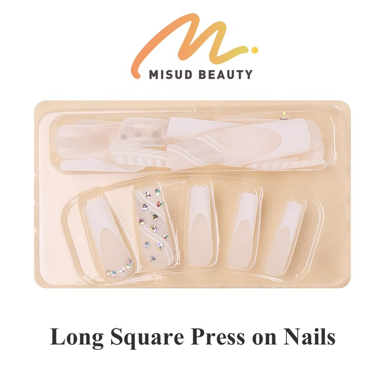 • 【Unique Design】 According to the most popular elements of the moment, these long square press on nails are designed with white french tip, swirl and luxury diamond.