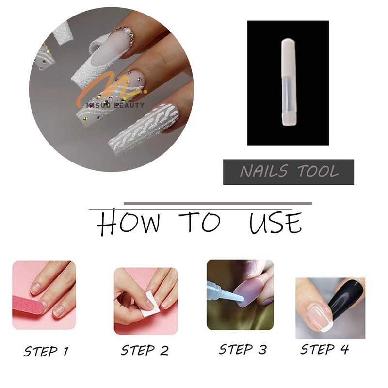 3.Select a right size of the nail, apply the glue to the back of the nail and put it on your fingernails.