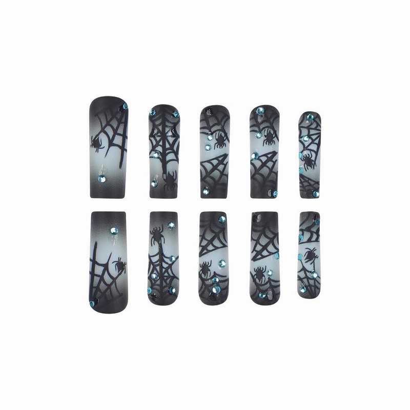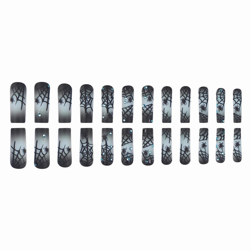 - 【Unique Design】 According to the most popular elements of the Halloween, these long square press on nails are designed with gray black ombre, goth spider web and diamond.
