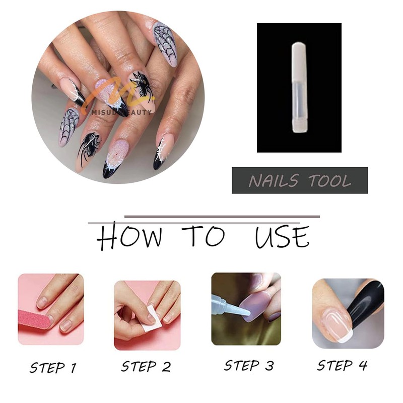 3.Select a right size of the nail, apply the glue to the back of the nail and put it on your fingernails.