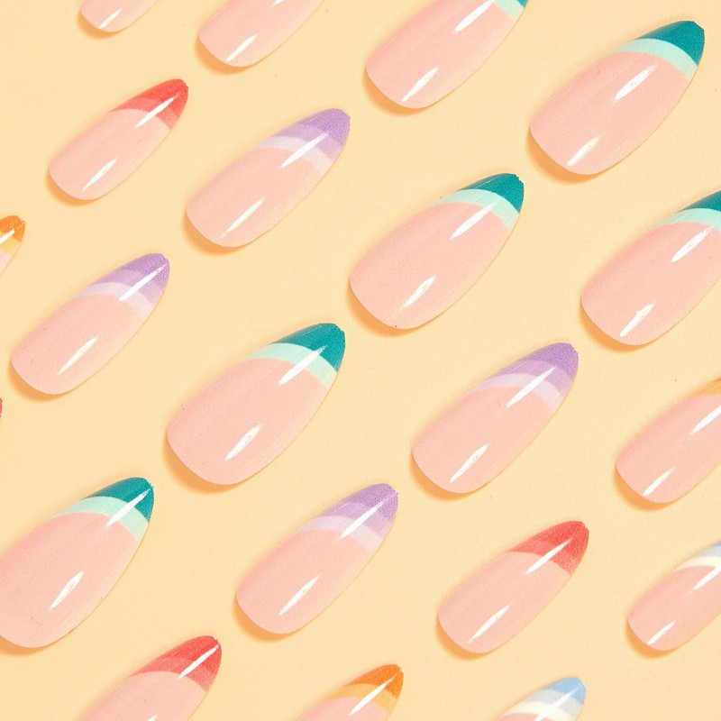 - 【Unique Design】 According to the most popular elements of the moment, these medium almond press on nails are designed with summer colorful french tip.
