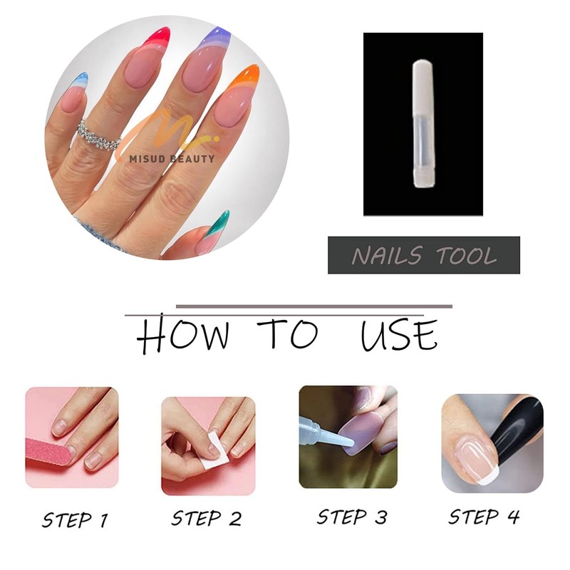 3.Select a right size of the nail, apply the glue to the back of the nail and put it on your fingernails.