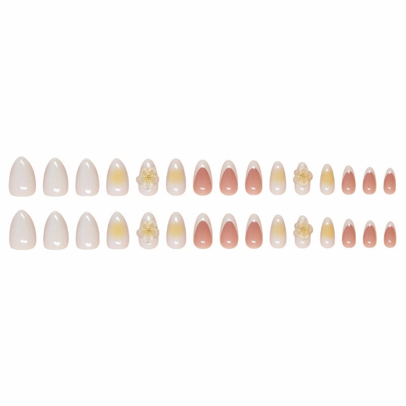 - 【Unique Design】 According to the most popular elements of the moment, these short almond press on nails are designed with white french tip, yellow ombre and 3d flower.