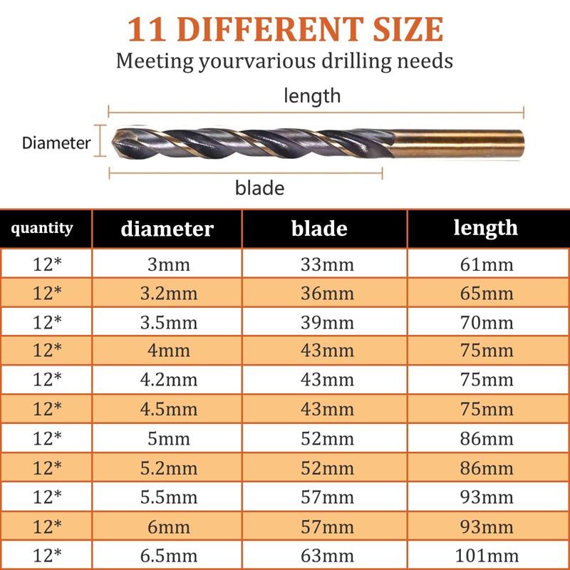 - 【Professional Drill Bit】Precise 135°self-centring tips, twist drill bit kit will not "walk" or "wander", clear chips and particles faster. Produced by precision fully ground which ensures chips move smoothly. Conforms to DIN 338.