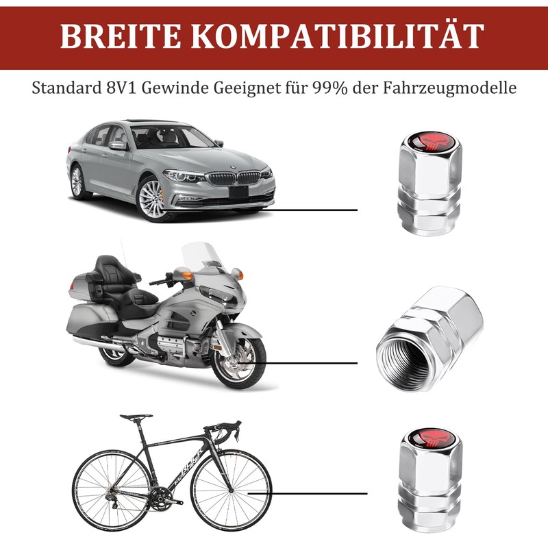 - Valve caps cover set: comes with 4 tyre valve caps. Motorcycle valve caps are made of high-quality aluminium alloy, anodised and powder-coated for maximum strength and corrosion resistant, extending the life of the tyre.