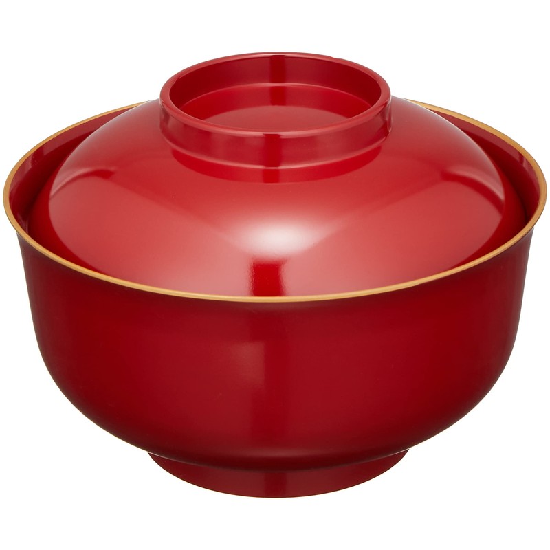 Mitani M16443-5 Yamanaka Lacquerware, Yamanaka Lacquerware, Hattan Zoni Bowl, Red Fuchi Gold Coating