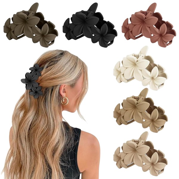 Mitdir Pack of 6 Flower Hair Clips Large Hair Clips Matte Hair Clips for Women Hawaiian Hair Flower Clip Strong Hold Hair Claws 10 cm Hair Clips for Thick Hair