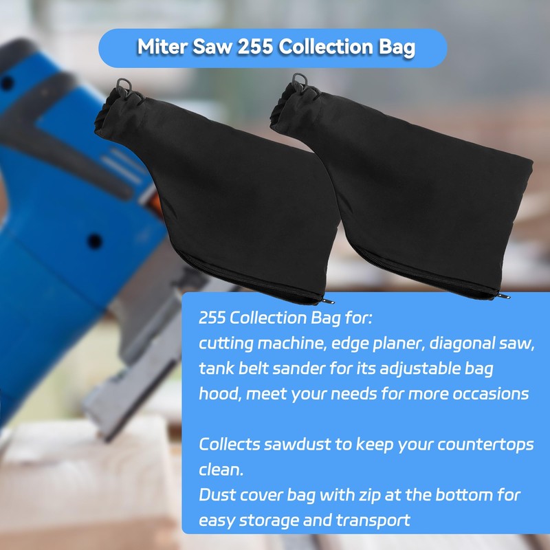 Miter Saw Dust Bag 255 Collection Bag for Miter Saw, Tank Belt Sander, Edge Planer, Diagonal Saw with Zipper and Wired Adjustable (2 Pack)