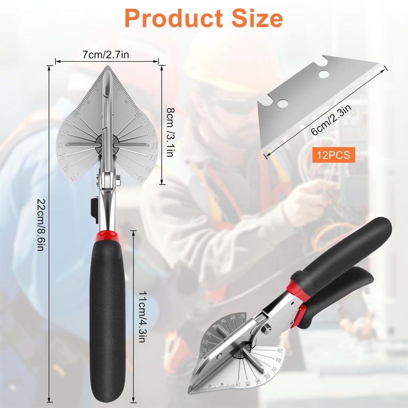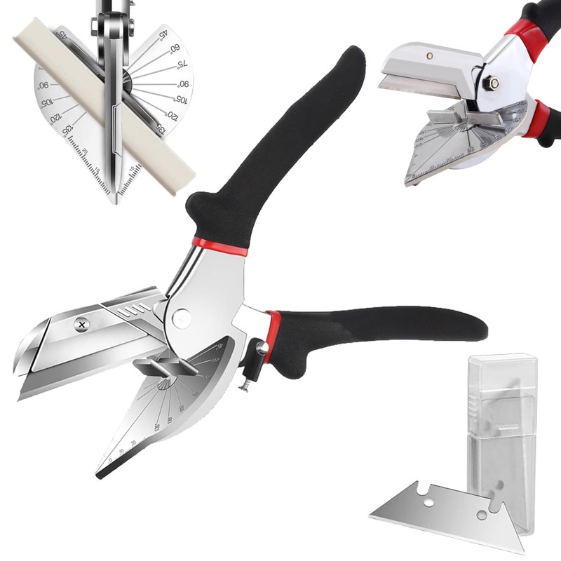 Miter Shears - 45 to 135 Degree Multi Angle Trim Cutter - with Safety Lock Hand Tools and 12 SK5 Alloy Spare Blades - Mitre Shears Angle Cutter for Cutting PVC Wire Duct Beading Wood Moulding Plastic