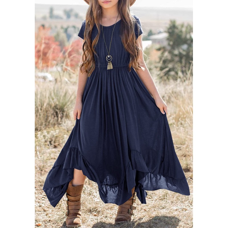 - Unique Design------Small pleats at center front, simple but not monotonous; Flowy High-low irregular ruffle hem. Everyone is going to want to give a second look when your kids rock this fabulous maxi dress!