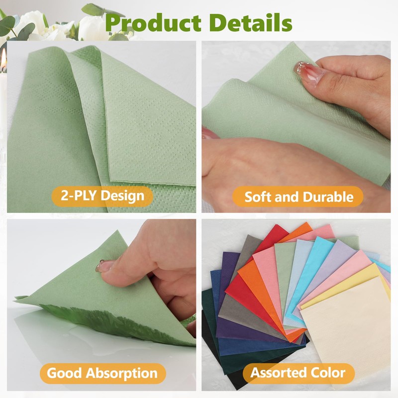 - 【SOFT & ABSORBENT】: Dinner Paper Napkins are made of high quality soft skin-friendly paper material that is durable, absorbent and disposable, which makes them perfect for day-to-day use at home, restaurant, diner or cafes.