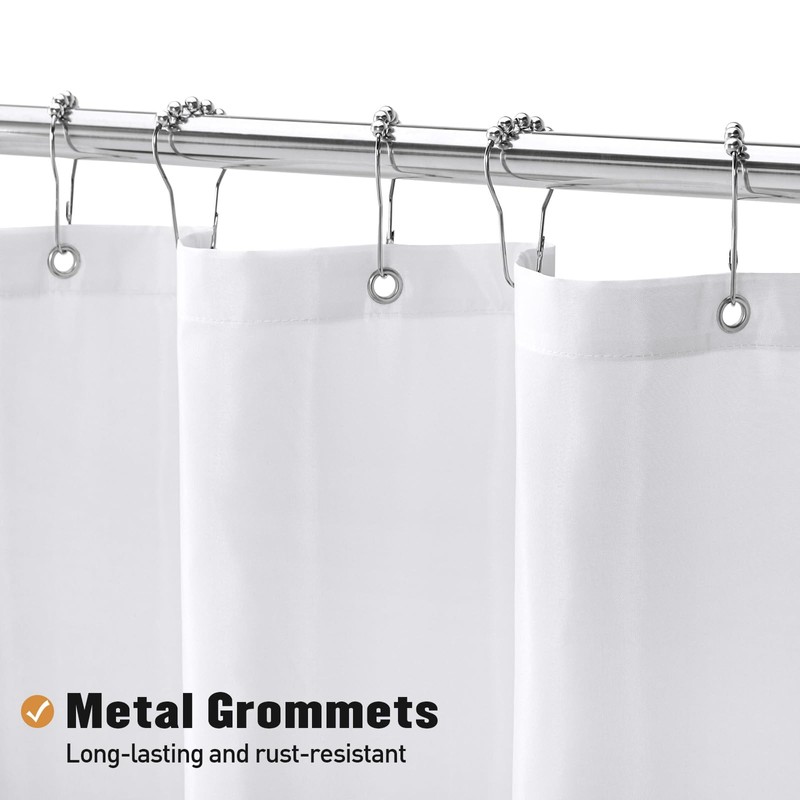 - DURABLE & SOFT - This lightweight shower curtain liner is the perfect addition to any bathroom. It features a reinforced header and rustproof metal grommet eyelets that provide a strong and secure fit. The fabric is soft & 100% waterproof, ensuring a clean and fresh shower experience.