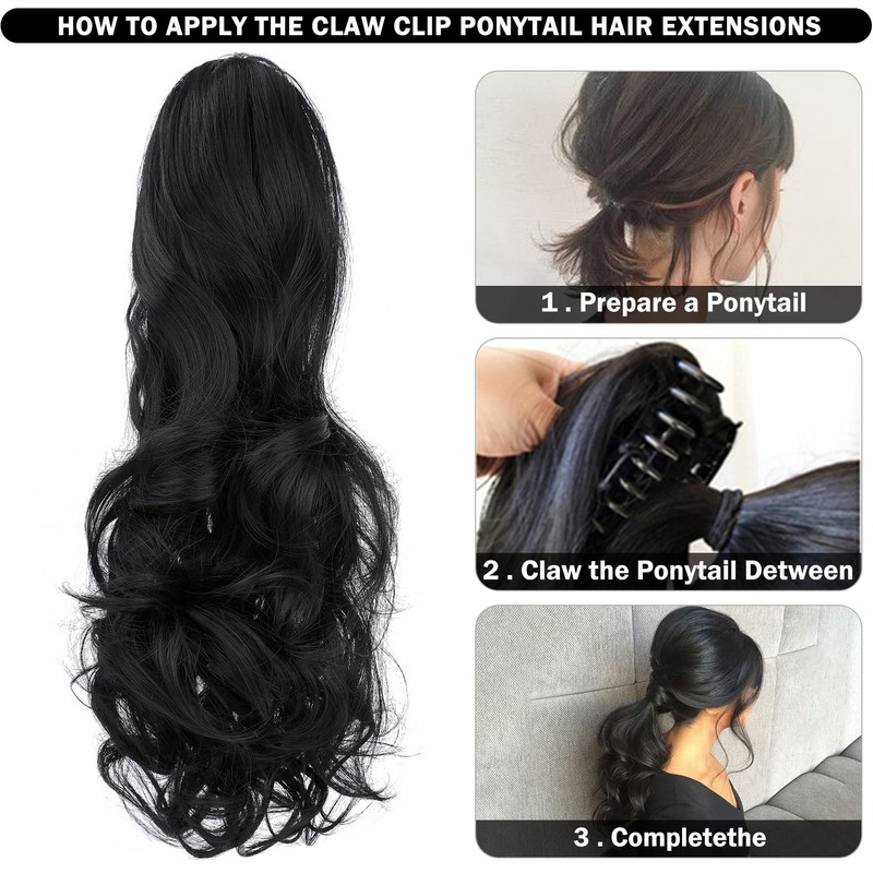 - Simple to use:Open the claw comb on the top of ponytail and clip the extension of ponytail on your own bun or ponytail! Built-in claw clips will blend in seamlessly without slipping off even on windy days, clips in perfectly over your own ponytail