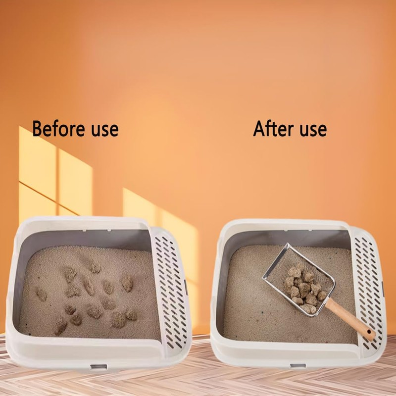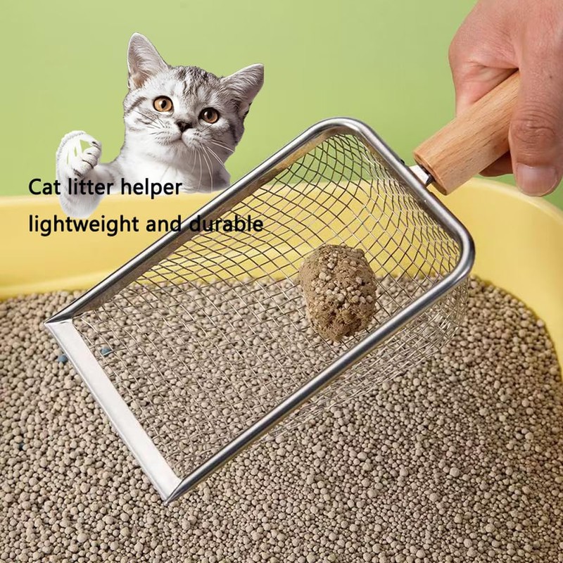 - 【Premium Material】Durable shovel made of solid wood handle and solid stainless steel fabric for corrosion resistance and non-sticky cat droppings. Medium size: 27,3x10x5 cm.suitable for daily shoveling.