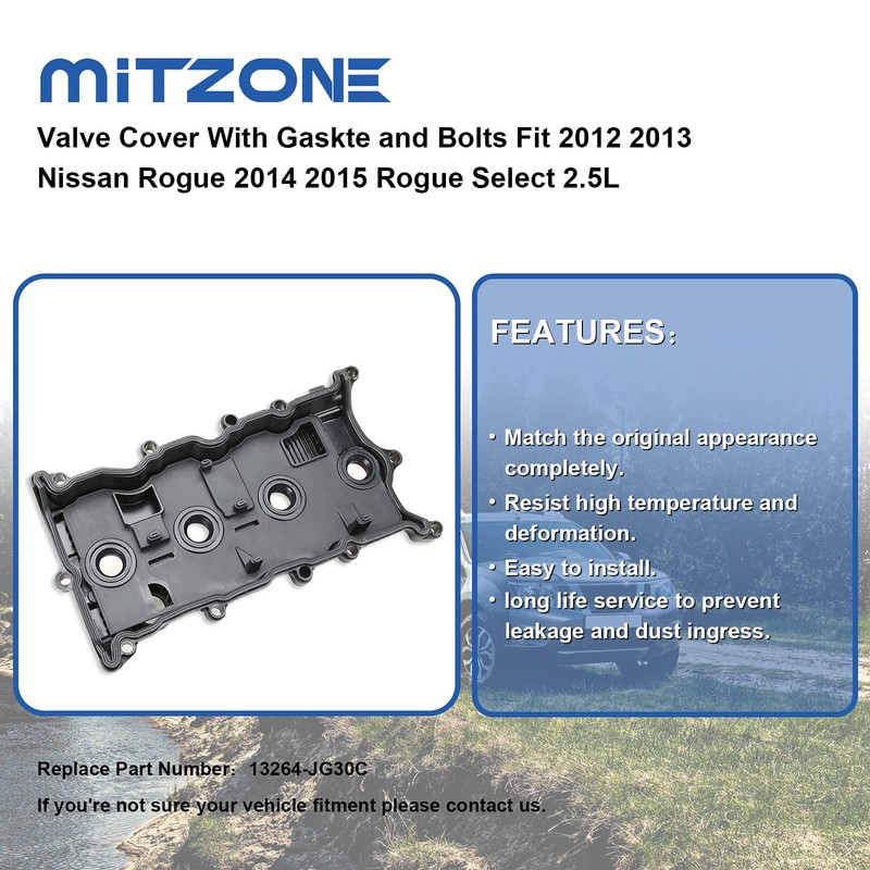 MITZONE Engine Valve Cover Compatible with 2012 2013 Nissan Rogue 2014 2015 Rogue Select 2.5L Replace # 13264-JG30C