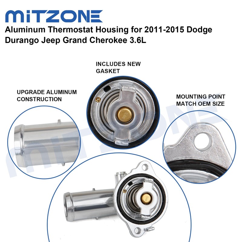 MITZONE Upgrade Aluminum Thermostat Housing Assembly Compatible with Dodge Durango Grand Cherokee 2011-2015 Wrangler JK 2012-2018 Replace 902-852 5184651AG 5184651AH