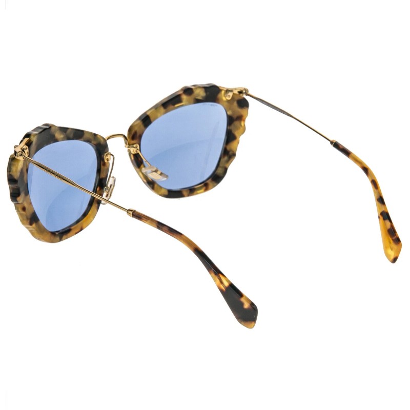 MIU MIU NOIR 04Q Brown Havana Blue Foil Leather Crystal Stud Sunglasses MU04QS