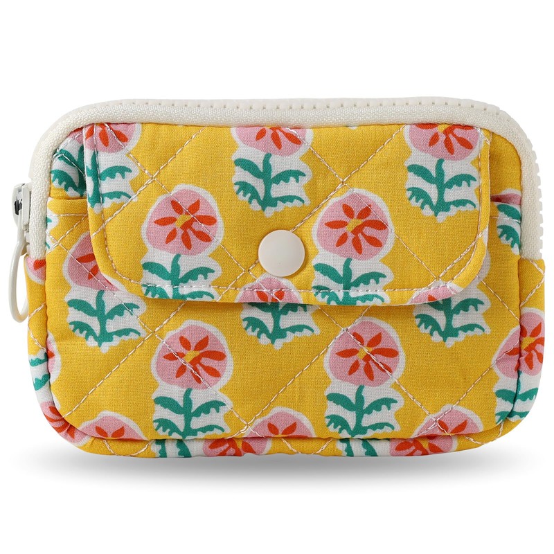 Miucatch Credit Card Case, Coin Case, Storage Bag, Mini, Flower Pattern, Cute Pouch, Ladies, Large Capacity, Canvas, Cute, Lightweight, orange