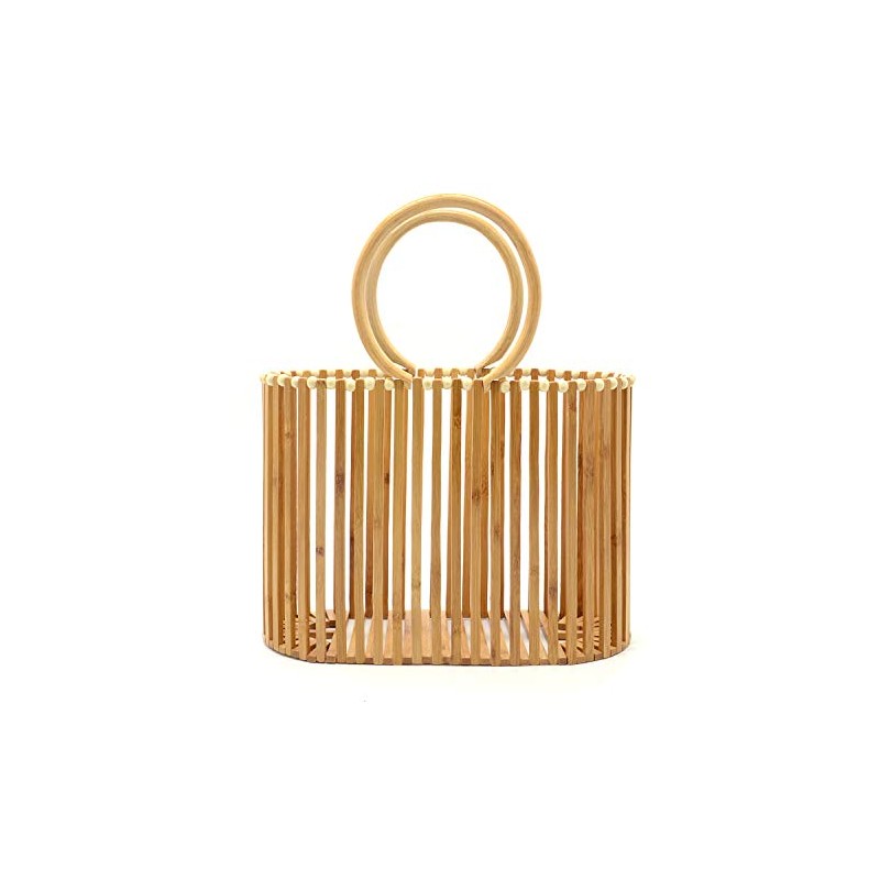 Miuco Women Top Handle Handbags Bamboo Purses Tote Brown