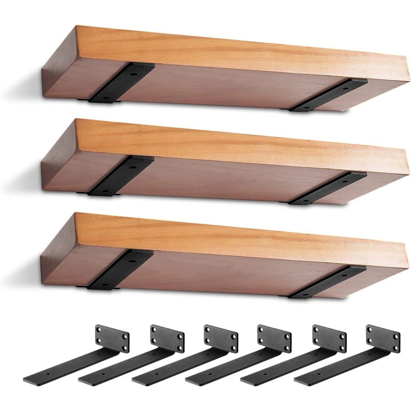 6 Pack Heavy Duty Shelf Brackets 6 inch, Floating 6inch - 6pack, Black