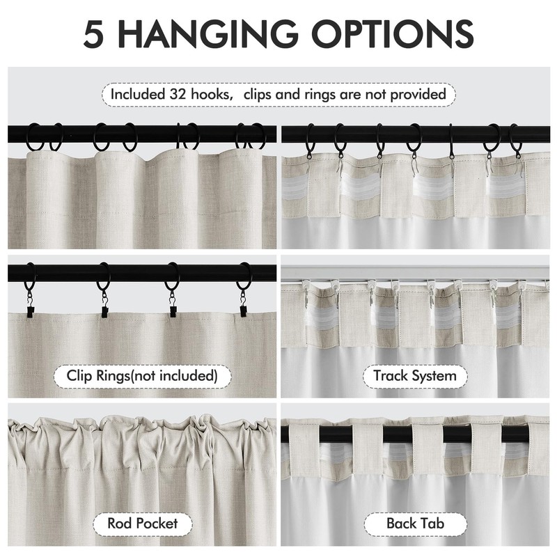 - VERSATILE HANGING OPTIONS: Choose from four hanging styles: back tabs, rod pockets, small hooks on the hook belt, or ring clips (ring clips not included). Quick and easy to install, tailored for your convenience.
