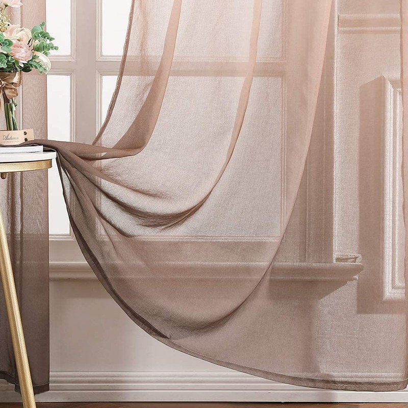 - Material: Made of high quality polyester blend with linen texture. These beautiful and gorgeous voile sheer curtains are transparent enough to let just the right amount of natural light to flow into the room, balancing the temperature and protecting the privacy at the same time.