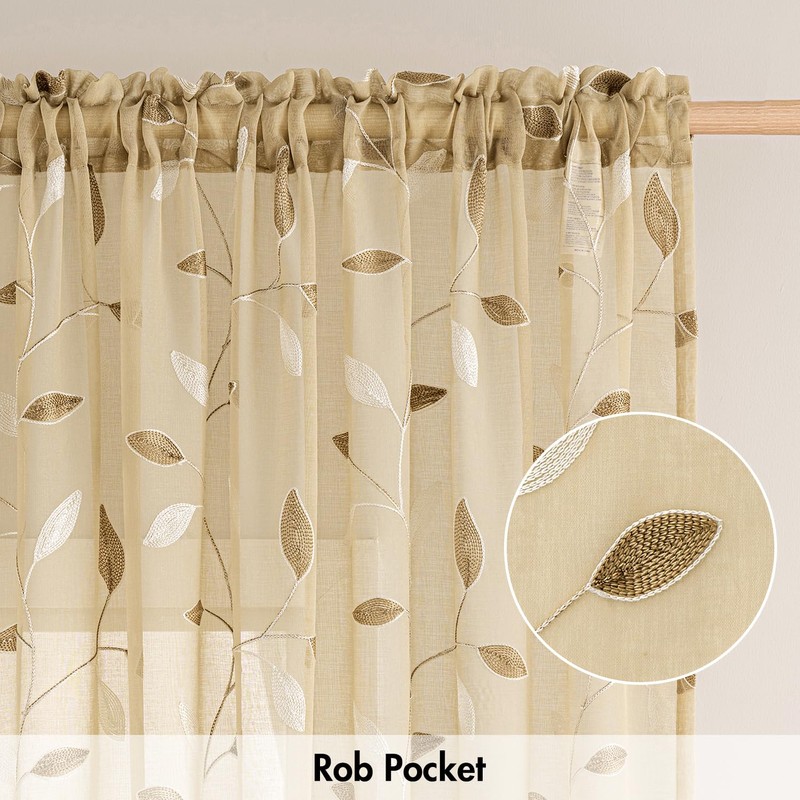 - GOOD DECORATION-Curtains suitable for most of windows and shutters, it also can be hung separately or paired with other. Pretty embroidered leaves on the sheer curtains creating a refreshing, natural and elegant sense to your room.
