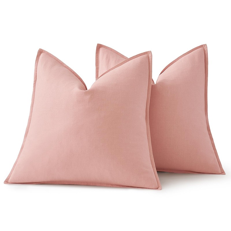 MIULEE Decorative Linen Pillow Covers 18x18 Inch Pink Boho Farmhouse Neutral Couch Throw Pillows for Bed Pack of 2 Accent Modern Pillowcase Sofa Livingroom Home Decor