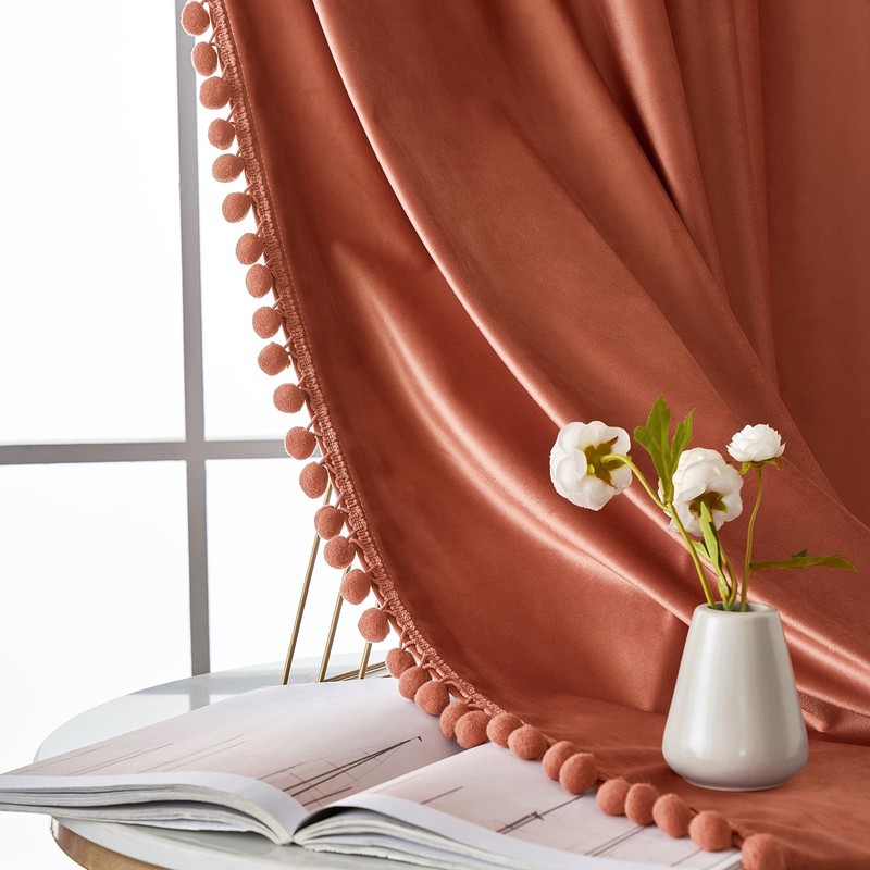 - POM POM DESIGN: MIULEE pom pom velvet curtains look very pretty and luxurious.All the pom-poms are sewn tightly on both sides of the curtain and will not fall out.