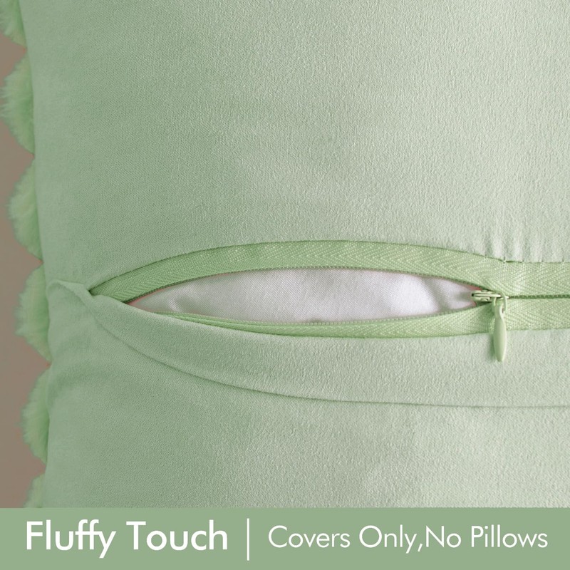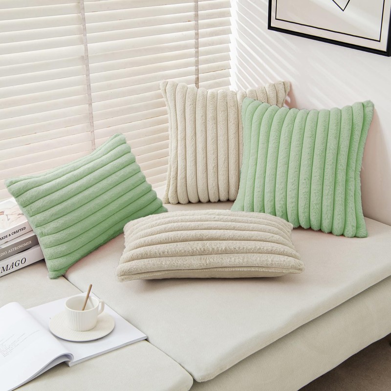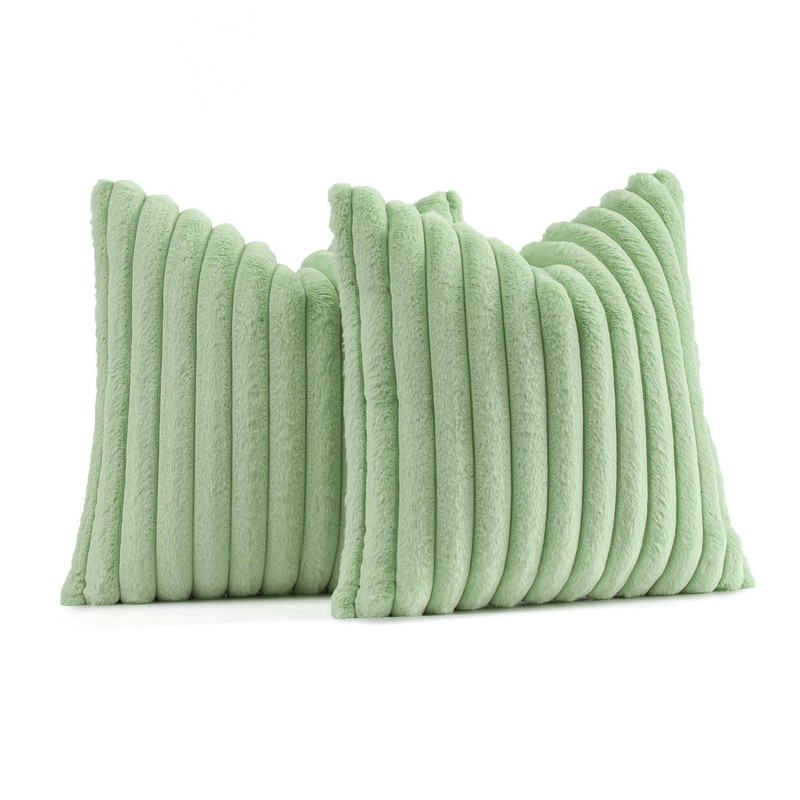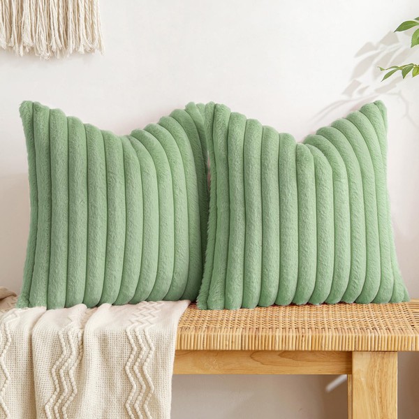 MIULEE Light Green Throw Pillow Covers 18x18 Inch Set of 2 Fuzzy Striped Soft Pillowcase with Velvet Back Faux Rabbit Fur Cushion Covers Decorative Home Pillows for Sofa Couch Bedroom Car